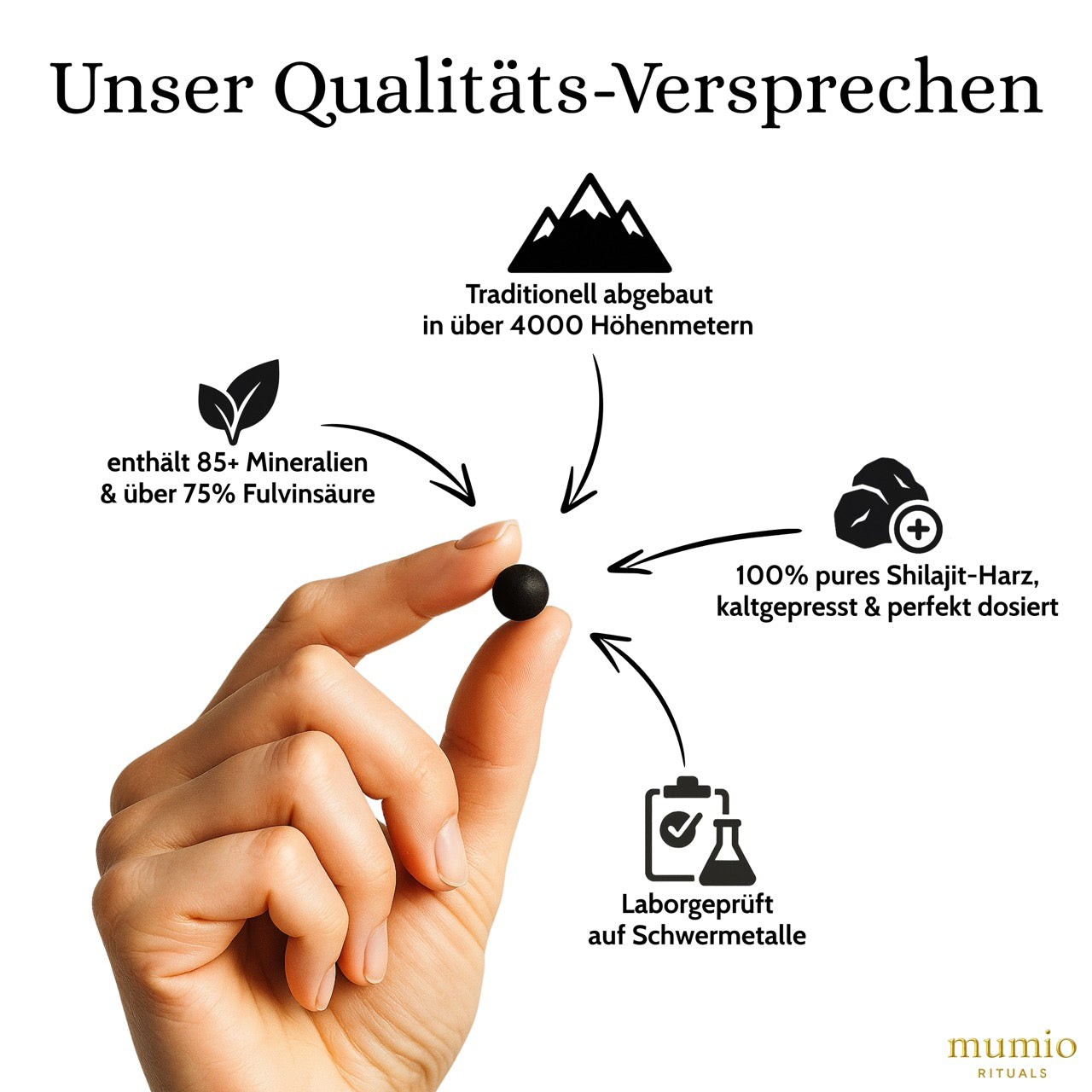 Mumio Shilajit Tabs bieten Dir die Reinheit des Harzes, die Praktikabilität von Kapseln und die Qualitätssicherheit, die Du verdienst. Das perfekte Shilajit für Deinen Alltag!